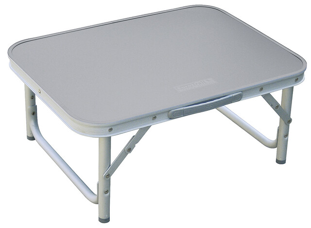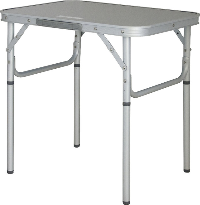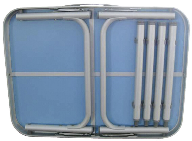Kempingový stôl s nastaviteľnými nohami.