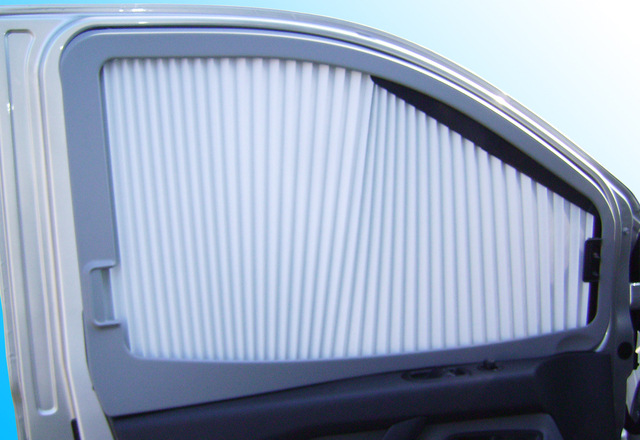 - Predné rolety sú pripevnené k A-stĺpikom, bočné časti sú priskrutkované k rámom dverí